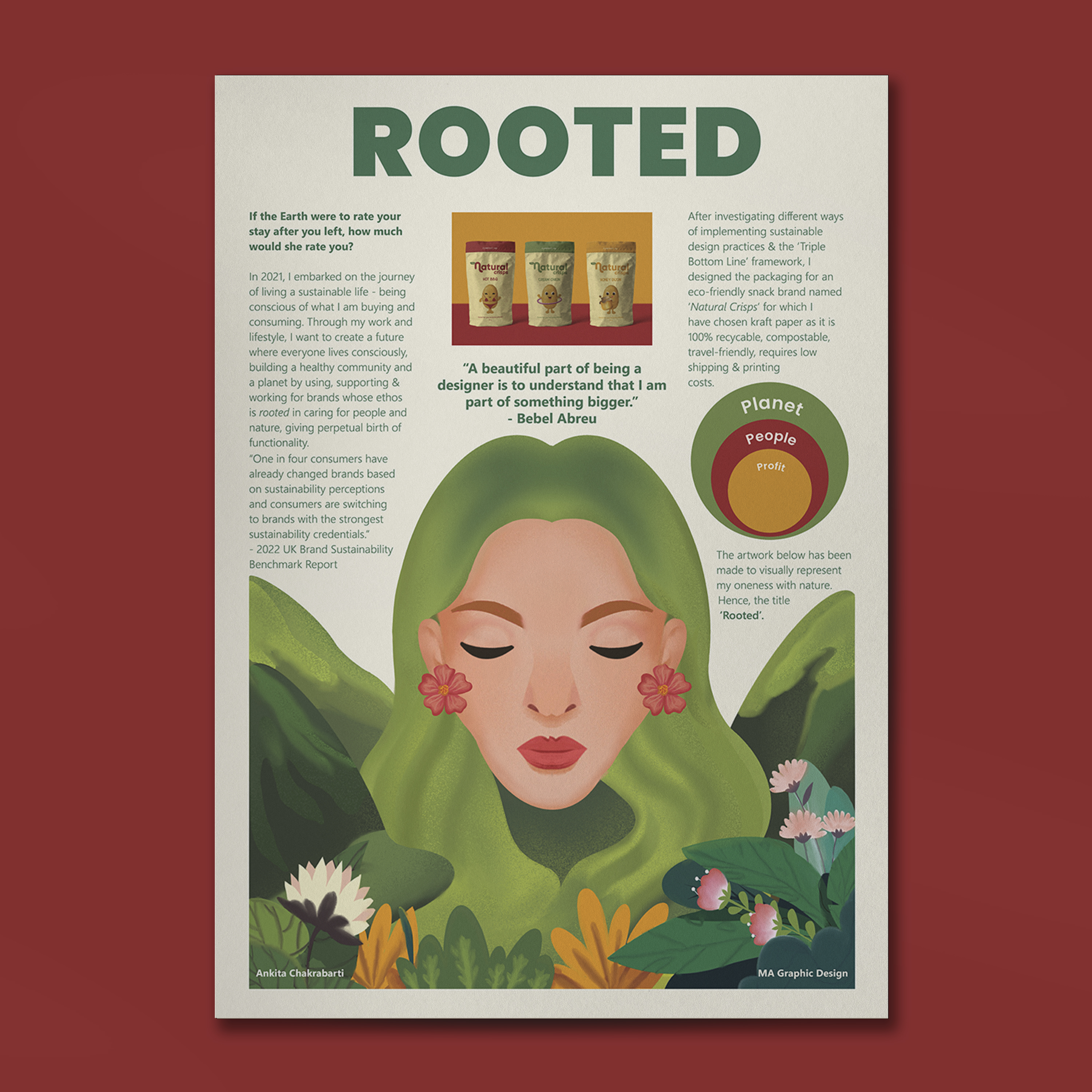 I am Ankita, a passionate graphic designer + illustrator and a lifelong student, specialising in branding and packaging. In 2021, I embarked on the journey of living a sustainable life, being conscious of what I am purchasing and consuming and in 2023, I have been certified as a 'Carbon Literate' by 'Sustainable Arts In Leeds'. Through my work and lifestyle, I want to create a future where everyone lives consciously, building a healthy community and a planet by using, supporting & working for brands whose ethos is rooted in caring for both the planet and the people, giving perpetual birth of functionality. I am a child of nature who loves the countryside. Food forms a major part of my lifestyle which I like using as the focal point of social interactions. I revolve around visuals and words, and I like speaking in metaphors and writing in analogies. My cynosure is inclined towards giving narratives an aesthetic visual voice by fusing literature, art and design.